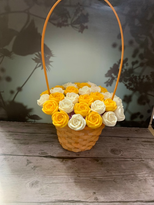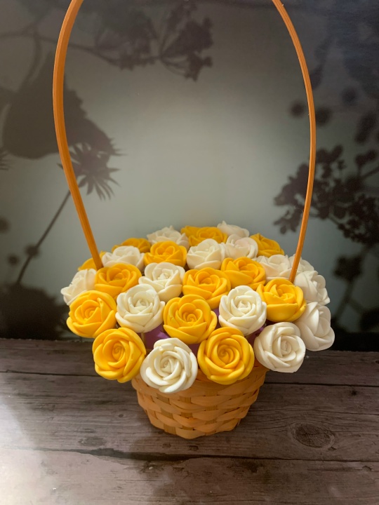 Элегантная плетеная корзинка, наполненная нежными белыми и солнечными желтыми розами, мастерски выполненными из премиального шоколада. Эта композиция, будто весеннее настроение, собрана для того, чтобы подарить тепло и радость. Такой подарок сочетает в себе эстетику живого букета и наслаждение от изысканного десерта. Корзинка станет запоминающимся и оригинальным способом выразить самые теплые чувства.